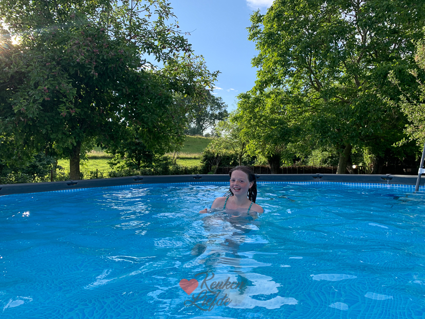 Ook vandaag maak ik nieuwe recepten voor de website. Met warm weer heb ik altijd zin in maaltijdsalades en ik besluit er eentje te maken om te delen op de website. Dit is een heerlijke maaltijdsalade met o.a. tortellini en gebakken kipfilethaasjes. Recept ga ik nog met je delen. Later op de dag ga ik de tuin in om onkruid te trekken en geniet ik van het mooie weer. ’s Avonds wordt er nog geplonsd in het zwembad.