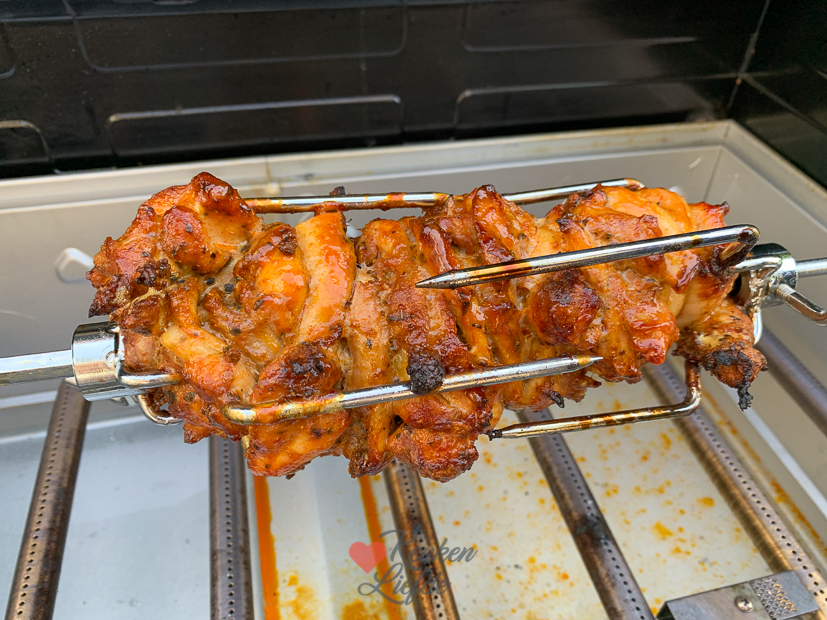 - Gemarineerde kippendijen aan het spit.