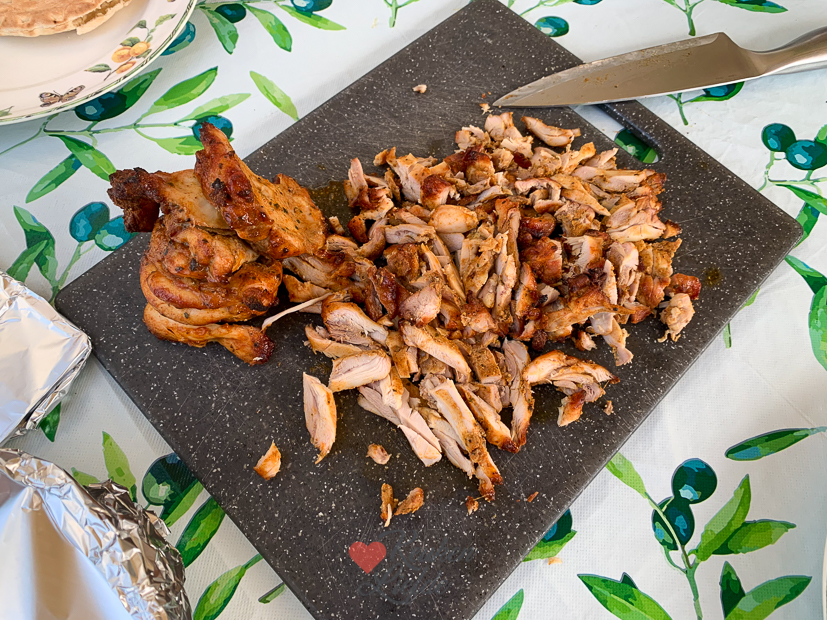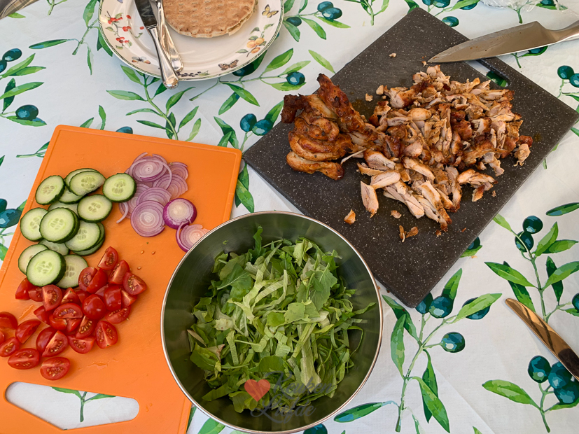 - Fijnsnijden en met rauwkost en knoflooksaus op een pitabroodje