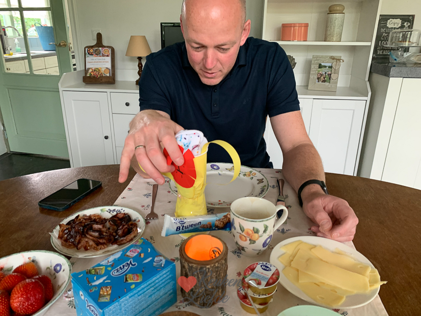 Johan is vrij vandaag en vermaakt zich met klusjes in en rondom huis. Ondertussen maak ik de cheesecake die ik gisteren had gemaakt af en zet hem op de foto. Daarna maak ik nog een lekkere kipsalade waarvan ik ook het recept met je ga delen. ’s Avonds steken we de barbecue weer aan. Na het eten heeft Ella een feestje en genieten Johan en ik buiten van een warme zomeravond.