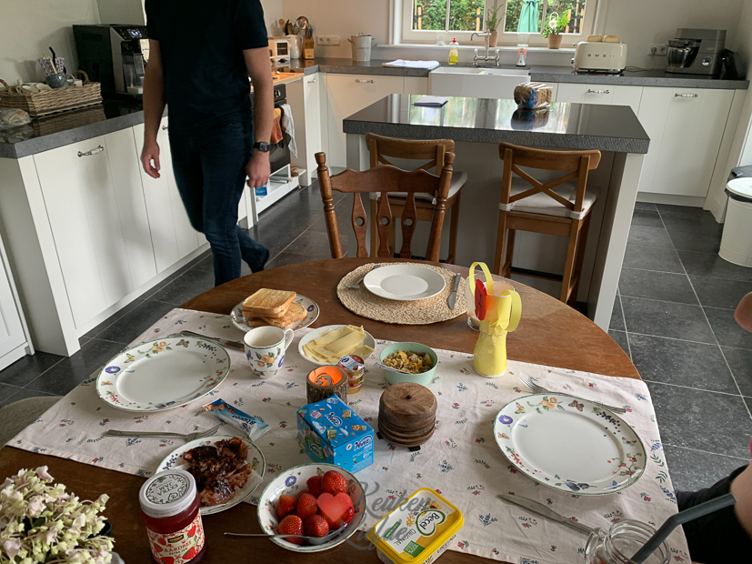 Vaderdag! Een tijdje geleden is ons broodrooster overleden en aangezien Johan ’s ochtends graag ontbijt met toastbrood besloten Ella en ik hem een nieuwe te geven. Na het uitpakken van de zelfgemaakte schoolknutsel van Ella-Marie (die gaan we volgend jaar toch wel missen) en de roomwitte SMEG broodrooster wordt hij direct in gebruik genomen. Er kunnen 4 sneetjes brood tegelijk in dus nu kunnen we allemaal tegelijk een toastbroodje eten. En omdat hij zo mooi is mag hij op het aanrecht blijven staan. Meneer (en ook grote en kleine mevrouw) was er erg blij mee! ’s Middags doet Ella met vriendinnen mee aan de Survivalrun in Boven-Leeuwen en gaan Johan, Nacho en ik mee om te kijken. Het parcours is ruim 7 km lang en ze moesten meer dan 50 hindernissen nemen met heel veel water en modder. Ze vond het geweldig. Thuis moet ze direct onder de douche en wordt de wasmachine aan het werk gezet. Ondertussen maak ik een pan bolognesesaus voor het avondeten. Vanavond eten we spaghetti.