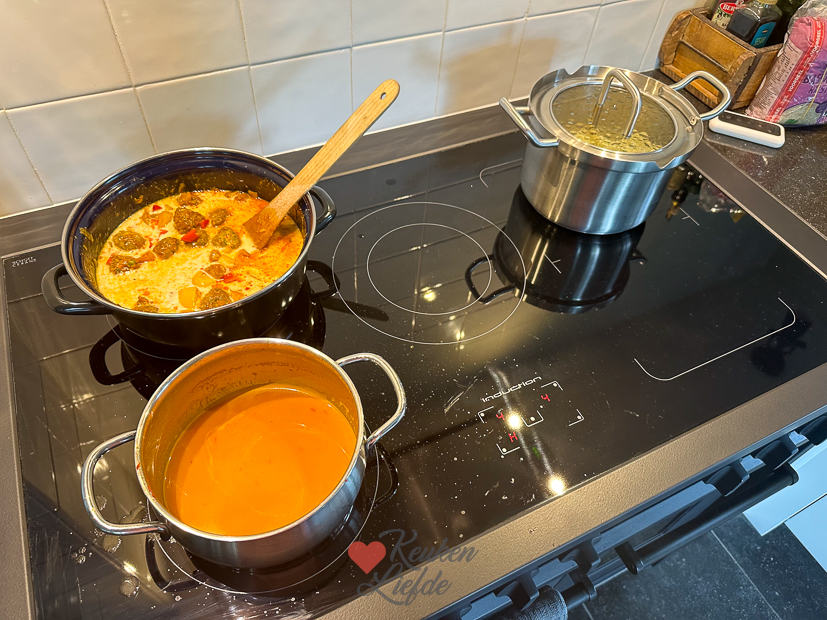 Ook vandaag zijn Nacho en ik in de keuken te vinden. Ik maak onder andere een supersimpel en lekker EK-hapje: frikandel speciaal hapjes! Voor het avondeten maakte ik een grote pan curry met de gele currypaste en kokosmelk die ik gisteren van Fairtrade kreeg.