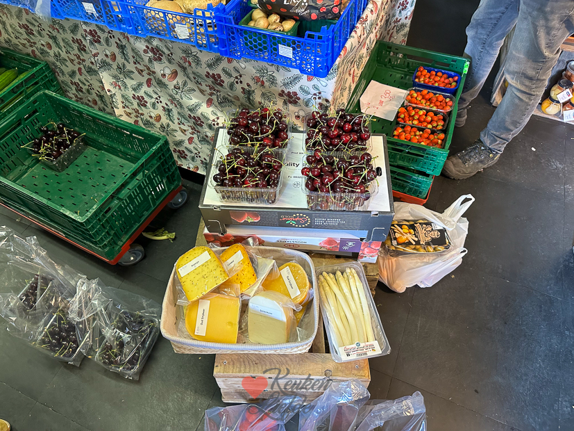 Na de lunch stappen we in de auto. We halen wat kersen en aardbeien bij de groenteboer die we bij onze ouders brengen, alvast een kleinigheidje voor Vaderdag morgen. Mijn moeder haalde net haar zelfgemaakte saucijzenbroodjes uit de oven dus die moesten we natuurlijk even proeven. 😋 Hier vind je trouwens mijn recept voor saucijzenbroodjes, bijna net zo lekker als die van mijn moeder. 😉