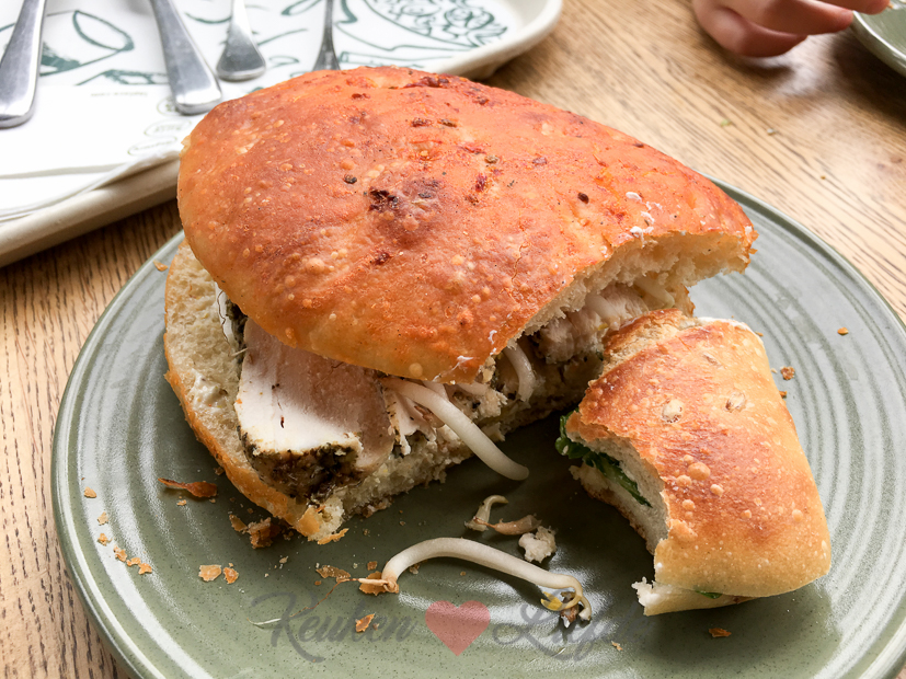- Ciabatte met gekruide kip, sandwichspread en taugé voor mij