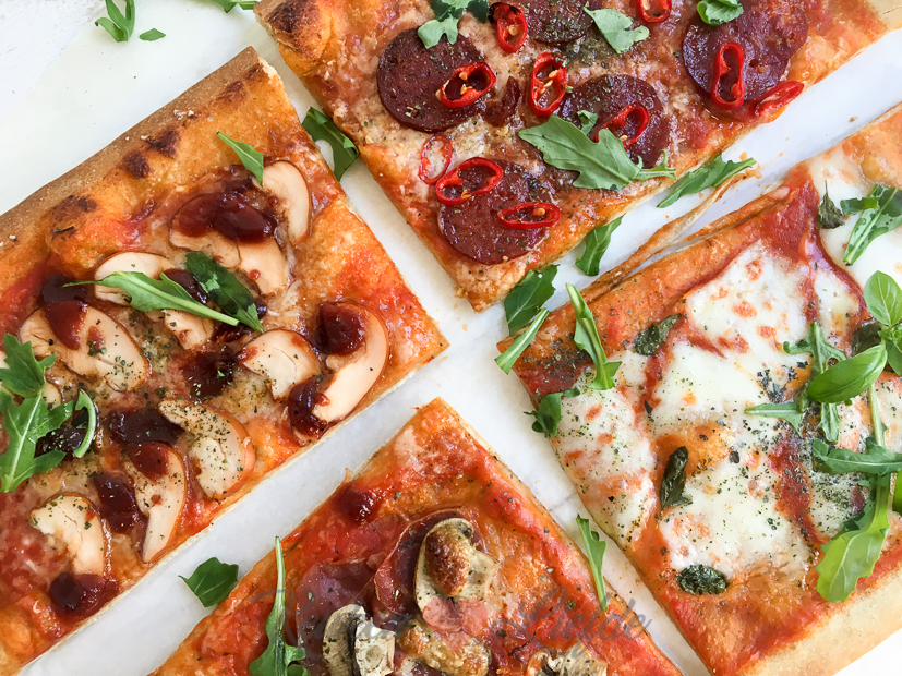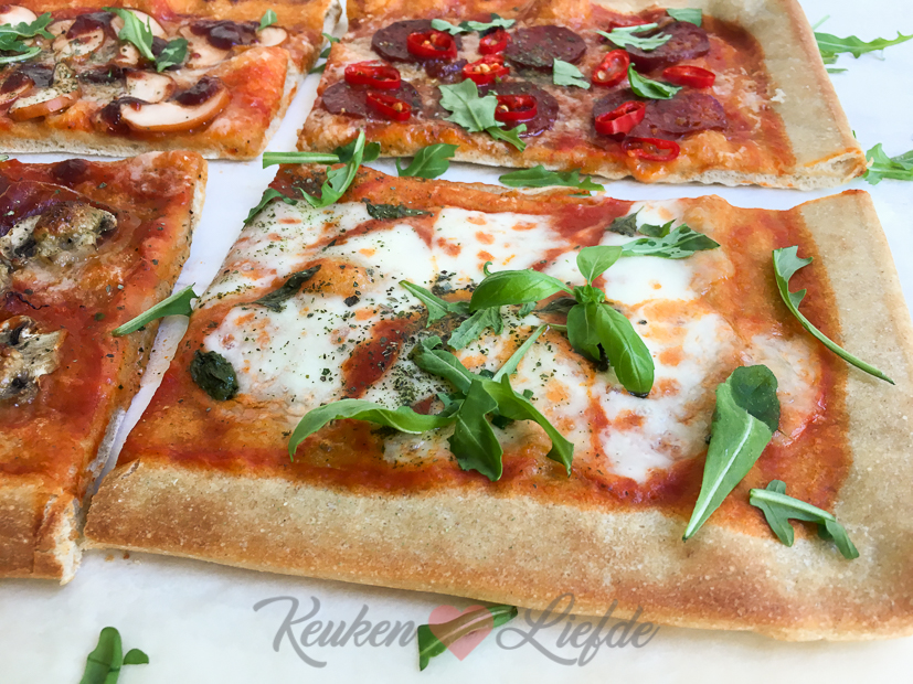 Eenmaal thuis maak ik een nieuw KL-recept, namelijk een plaatpizza om te delen.