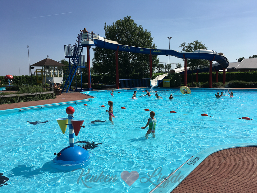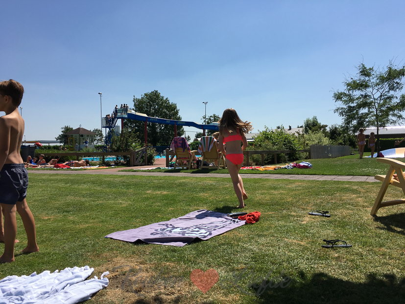 Als ik Ella ’s middags weer uit school haal gaan we samen zwemmen — of eigenlijk: Ella zwemt en ik lees een roman — in het openluchtzwembad De Zeven Morgen dat naast de school ligt. Genieten!