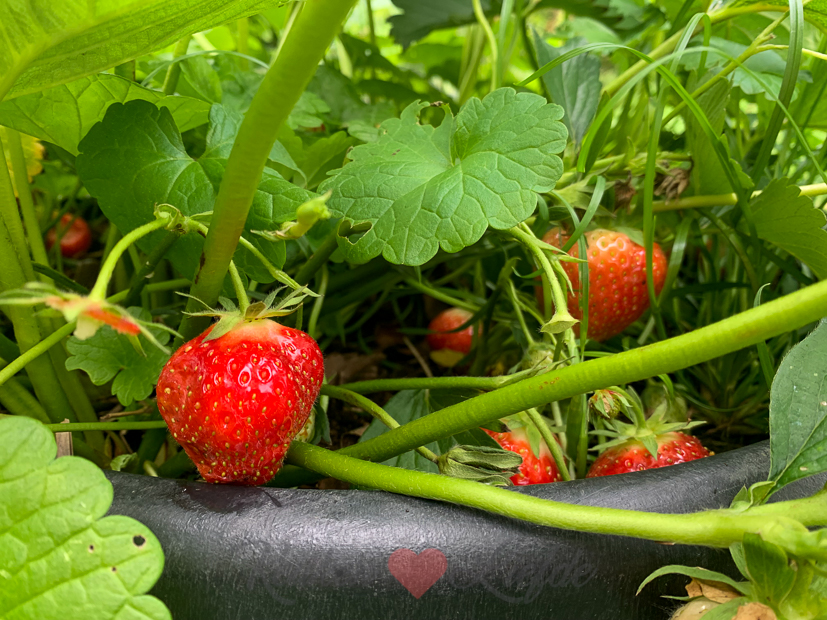 - Dit jaar voor het eerst aardbeien in een grote teil gezet en dat bevalt goed…