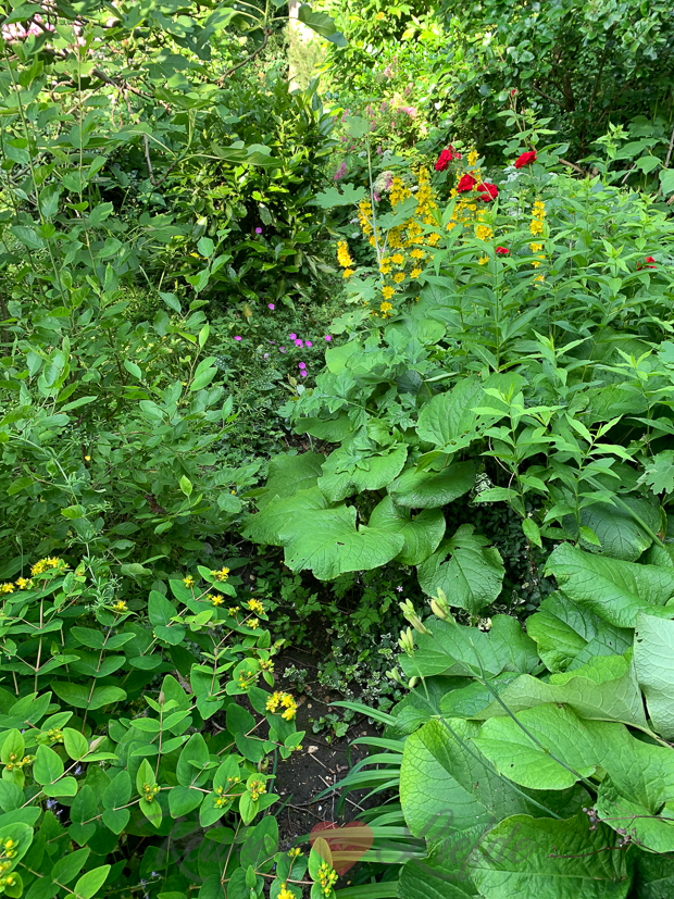 - Het kronkelende tuinpad verdwijnt in een groene wildernis …