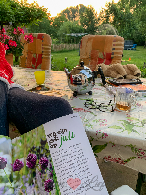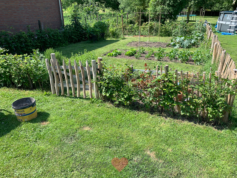 Ondertussen als Ella-Marie op het voetbalveld staat voor het Oranjefestival, duiken Johan en ik de tuin in. Er is van alles te doen, maar onkruid trekken staat bovenaan op het lijstje.