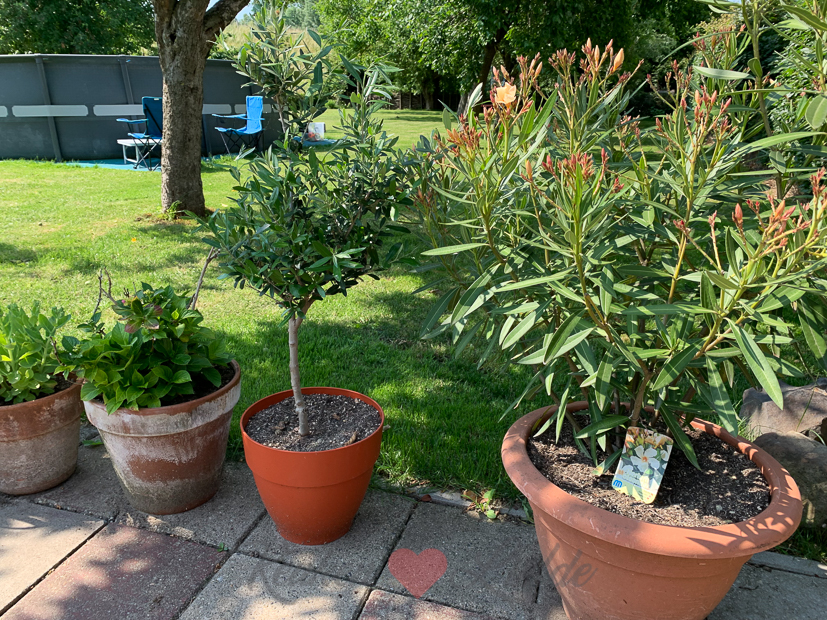 - De olijf en oleander die we vorig jaar kochten doen het goed…