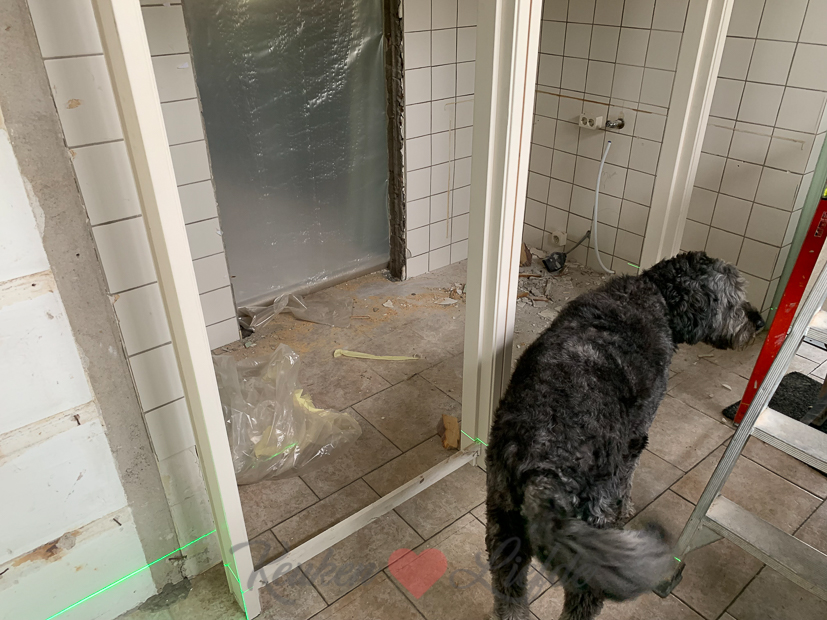 De aannemer gaat vandaag ook weer aan de slag. De oude keuken wordt veranderd in hal met toilet.