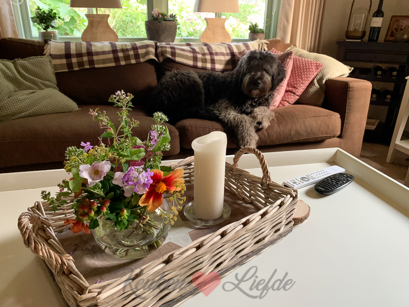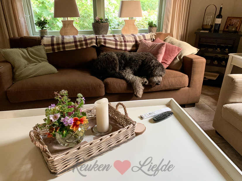 Nacho is ’s avonds helemaal uitgeteld van een dagje spelen en ploft vermoeid op de bank neer… Ahum! Hoe vertederend dit plaatje ook is, na het maken van de foto moest hij er toch echt weer vanaf. Ik vind het gewoon niet zo fris als een hond op de bank ligt. We vermoeden trouwens wel dat dit ’s nachts zijn vaste slaapplek is, want hij lag er net iets te comfortabel bij. ?