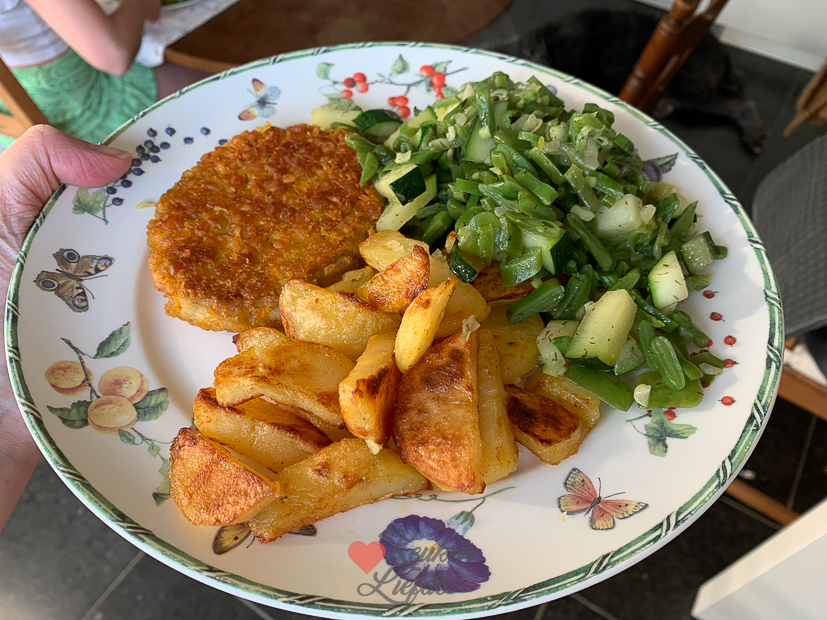 Aan het eind van de middag heeft Ella een afspraak bij de orthodontist in Tiel. We zetten de auto neer bij het voetveer in Wamel en varen de Waal over. Er worden een aantal foto’s en afdrukken van haar gebit gemaakt. Volgende week moeten we terug om het plan van aanpak te bespreken. Als we weer thuis zijn is Johan al bezig met het avondeten. Op het menu staan gebakken kipschnitzels, snijbonen met courgette en gebakken aardappels. Ella wil graag een plakje cheddar op haar kipschnitzel.