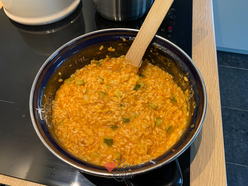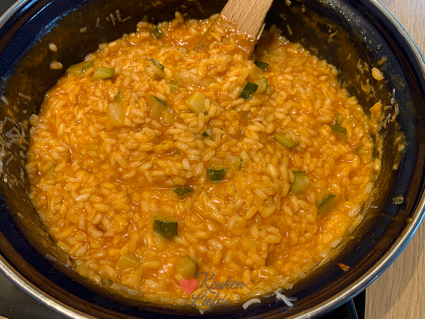 Vanavond staat er tomatenrisotto met courgette op het menu. Aangezien we weer omkomen in de courgettes gaan ze overal in. Haha!