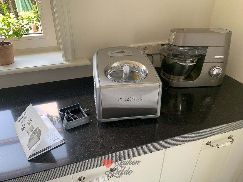 Er staat ’s middags een bijzonder onvriendelijke oudere meneer op de stoep die controleert op hondenbezit. Volgens zijn gegevens is onze hond niet aangemeld bij de belasting en als ik meneer vriendelijk vertel dat dit wel het geval is laat hij duidelijk merken dat hij het niet gelooft. De gegevens op zijn telefoon kloppen. Punt. Aaarggghhh, wat een zure man! Een telefoontje naar de BSR bevestigd inderdaad dat Nacho is aangemeld en de mevrouw vertelt dat er meerdere klachten binnen waren gekomen over onvriendelijke hondencontrole. Pffff, ga ander werk zoeken of ga met pensioen! Iets later staat er weer iets op de stoep waar ik wel blij van word; een ijsmachine van Cuisinart! In het bijgeleverde boekje stonden een aantal recepten waaronder een recept voor frozen yoghurt met perzik. Ik ga meteen naar de winkel om de benodigde boodschappen te halen. Als ik weer thuis ben maak ik alvast het yoghurtmengsel dat daarna een paar uur maar nog liever een nacht in de koelkast moet staan. Morgen hoef ik het mengsel dan alleen maar in de ijsmachine te schenken en hem aan te zetten. Ben zo benieuwd… Verder haalde Johan na zijn werk een houten plank op die ik voor de wc had besteld bij de Zaagfabriek. Hij is prachtig en past perfect! De wc is nu bijna af.