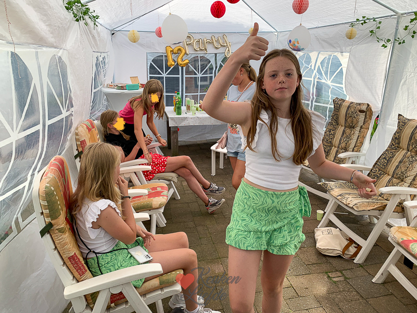 Eind van de middag viert Ella haar kinderfeestje en we zijn overdag vooral druk met de voorbereiding. Tent opzetten, versieren, boodschappen doen, etc. Als alle meiden er ’s middags zijn rijden we met twee auto’s naar de Akward Experience in Elst. Een superleuk museum met gekke kamers waar je de tofste foto’s en filmpjes kunt maken. De dames vonden het superleuk! Echt een aanrader voor zowel jong en oud. Daarna weer terug naar huis waar het feestje verder werd voortgezet. De frozen yoghurt was overigens geen succes bij de meeste meiden (ze moesten erg wennen aan de smaak) dus kregen ze vanille-ijs. Ella, Johan en ik vonden de frozen yoghurt wel erg lekker! Liefhebbers voor het recept? Of liever een ander ijsrecept? Laat het maar weten in een reactie hieronder.