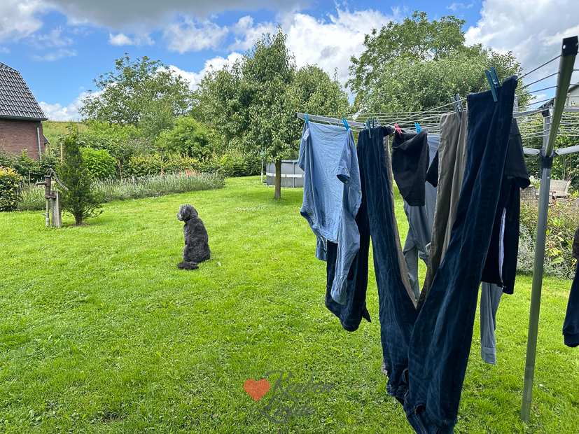 Ik draai veel wasjes en hang ze buiten op. Met een klein schietgebedje lukte het om alle was er droog af te halen.