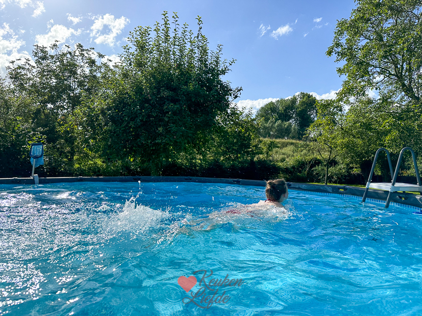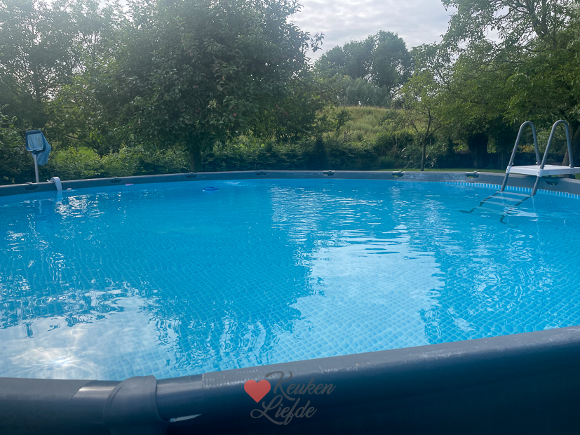 Het zwembad maken we netjes elke dag schoon zodat we kunnen zwemmen als de temperatuur het een beetje toelaat. 🤞🏻🙄