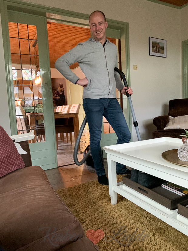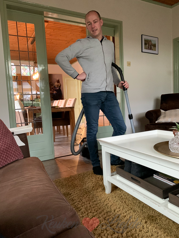 Ik zeg: “hierna moet je ook kantoor en de hal nog even zuigen… ” ?