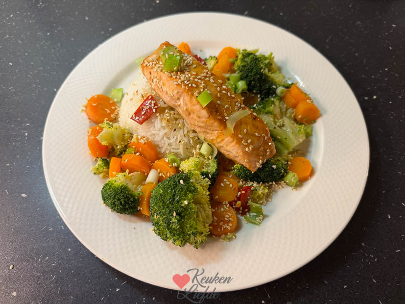 Moeders stuurde me weer een smakelijke foto door van haar avondeten. Ze had de Japanse zalm teriyaki gemaakt uit ons kookboek ‘Makkelijke Wereldgerechten‘ en die viel bijzonder goed in de smaak.