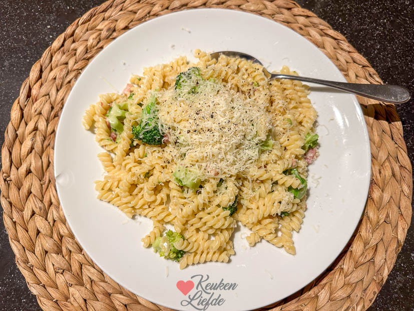 Verder werden er cupcakes gemaakt door de tiener toen die weer uit school was en ’s avonds maakte ik een pastaatje met spekjes, broccoli en kaassaus. Die maak je zo: 125 g gerookte spekreepjes langzaam uitbakken in een ruime hapjespan tot ze goudbruin zijn. Dan gesnipperde ui en 1 knoflookteen erbij en even zachtfruiten. Dan 1 broccoli en de stronk (geschild) in kleine roosjes/stukjes, een 1/2 verkruimelde kippenbouillontablet, 100 ml water en 150 ml slagroom of kookroom erbij. Deksel op de pan en zachtjes smoren tot de broccoli beetgaar is. Ondertussen kook je de pasta beetgaar. Als de broccoli beetgaar is roer je een handje geraspte parmezaan door de saus. Even proeven en eventueel nog op smaak brengen met versgemalen peper. Pasta afgieten en door de saus roeren.