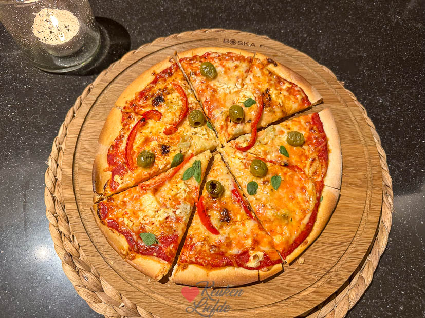Ik filmpje hoe ik het pizzadeeg maakte maar ik heb nog geen tijd gehad om hem te editen. Zelfgemaakte pizza is echt zo makkelijk en lekker. Doe mijn best om hem snel met jullie te delen op Instagram.