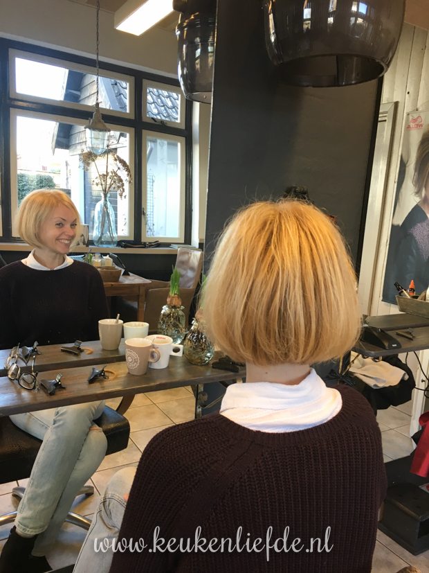 Ik zit om negen uur ’s ochtends in de kapperstoel bij De Kapper in Ingen. Ik heb al mijn moed verzameld en besloten mijn haar weer af te knippen. Ik heb dun haar en kort lijkt het tenminste nog wat. Ik voel me altijd zo’n tutje met kort haar, maar ja, je moet roeien met de riemen die je hebt. 😉