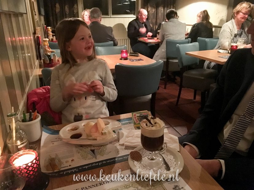 Johan gaat ’s avonds uit eten met collega’s van zijn werk en ik besluit Ella-Marie te trakteren op een pannenkoek bij De Pannekoekenbakker in Buren.