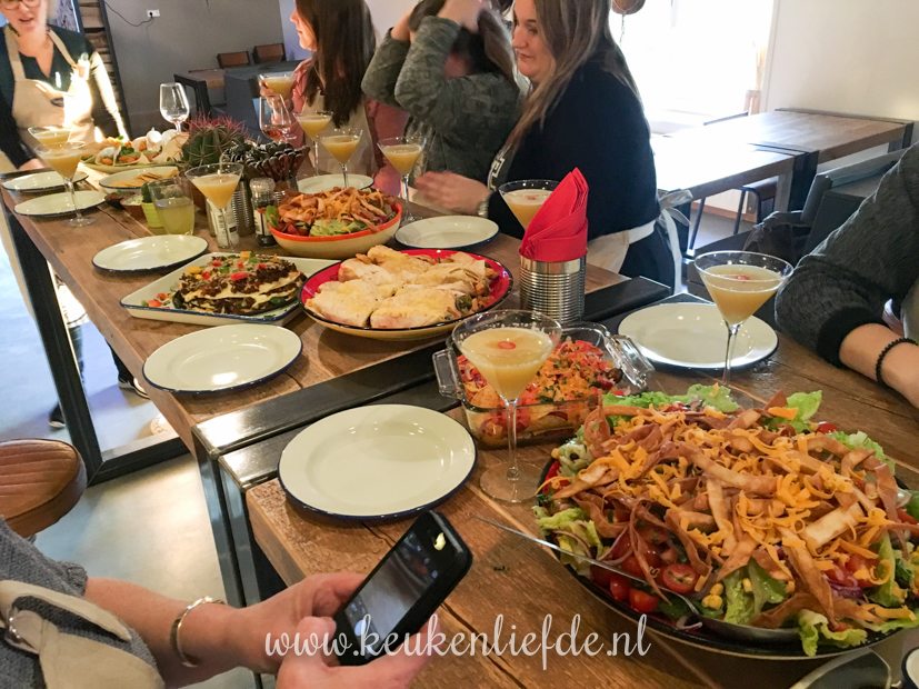 - Het harde werken wordt beloond met een uitgestalde tafel vol Tex Mex lekkers!