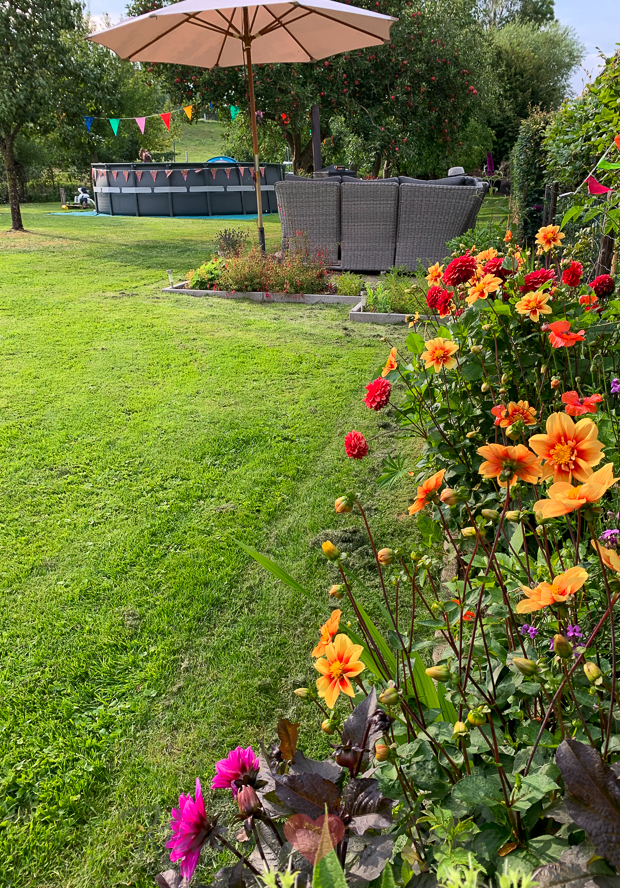 Als we thuiskomen genieten we nog even na in onze eigen tuin.