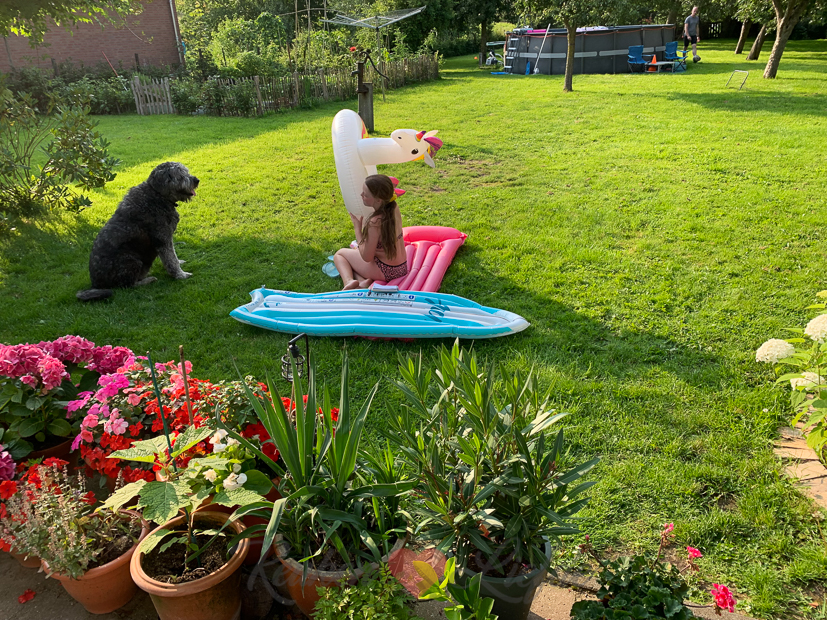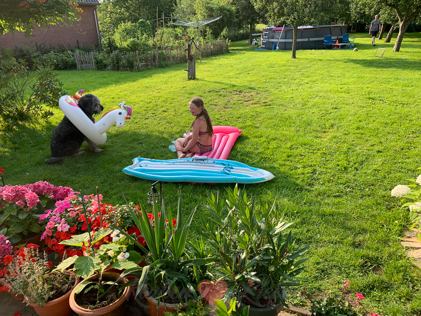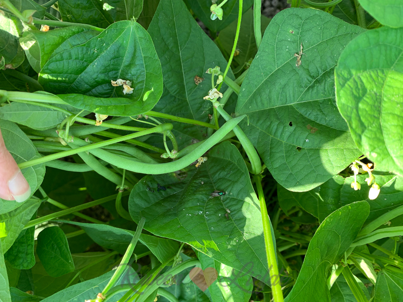 Ook vandaag maak ik nog een paar recepten voor de website. De courgette die ik nodig heb voor een van de recepten pluk ik vers uit de moestuin. Ook kan ik twee komkommers plukken en de sperziebonen laten ook niet lang meer op zich wachten.
