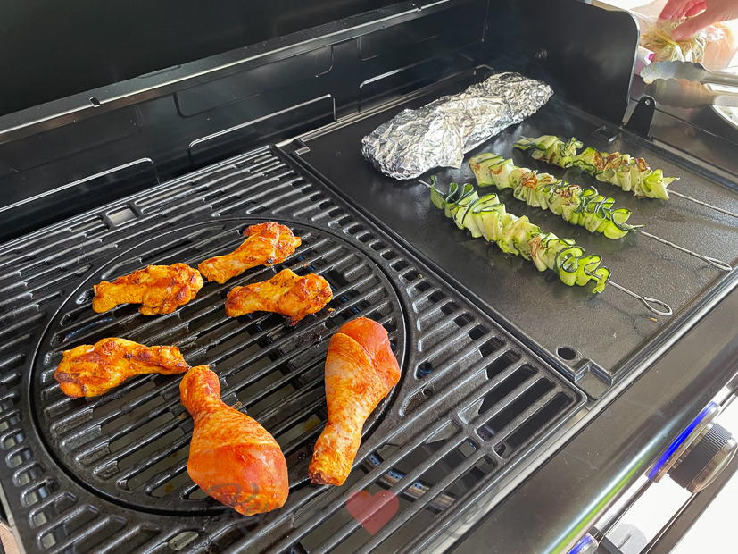 ’s Avonds gaat de barbecue weer aan en grill ik kip van de poelier met wat courgettespiesjes en een gevuld stokbrood met kruidenboter. Die laatste wilde ik als recept op de website delen maar de onderkant van het stokbrood was volledig zwartgeblakerd terwijl de bovenkant nog zacht was. Geen succes dus. Ik wil het nog een keer proberen maar dan leg ik het stokbrood op indirecte of lage hitte en laat het folie aan de bovenkant open…. Ik ben niet zo’n kluiver trouwens dus die kipfilet was voor mij. 🙂