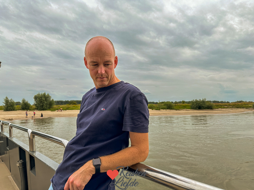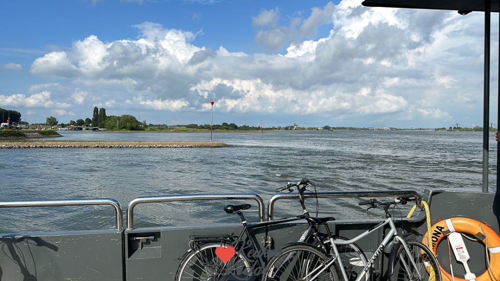 Na het eten brengt Johan zijn vader Ella en de fiets (op de fietsendrager) weer thuis. Het pondje van Tiel naar Wamel vaart namelijk maar tot half zeven ’s avonds. We drinken nog even een kopje koffie in de tuin en Ella en haar neefje (die logeert een nachtje bij opa en oma en was gezellig meegekomen) trappen nog een balletje samen.