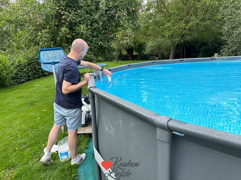 ’s Middags gingen we even een stukje fietsen met z’n drieën. Weer thuis werd het zwembad schoongemaakt en de barbecue aangestoken. We aten ’s avonds zelfgemaakte kipsaté met satésaus, salade en stokbrood. Simpel en heerlijk. Na het eten werd de cheesecake aangesneden voor een klein puntje. Eindelijk!