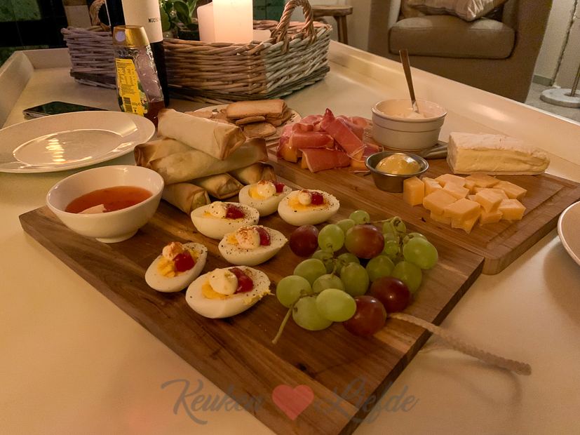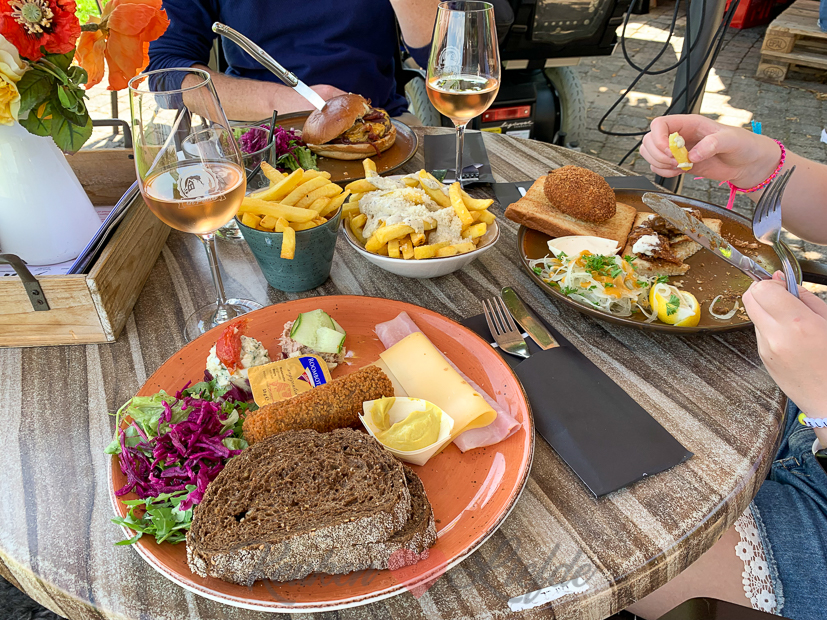 Eind van de ochtend stappen we met Nacho in de auto en rijden een paar dorpen verder naar Rossum. We hebben daar gereserveerd bij restaurant In Petto voor de lunch en willen voor die tijd nog even wandelen met Nacho. We wandelen over de Waaldijk naar de sluis die Maas en Waal verbindt en nemen daarna nog een kijkje bij het naastgelegen Fort Sint Andries: de overblijfselen van een militair fort dat tijdens de Tweede Wereldoorlog door de Duitsers werd opgeblazen. ’s Middags nog even gezwommen en wat gerommeld in de tuin. Het avondeten sloegen we over want zaten nog vol van de lunch, maar ’s avonds kwam er een borrelplankje op tafel. Het is tenslotte vakantie.