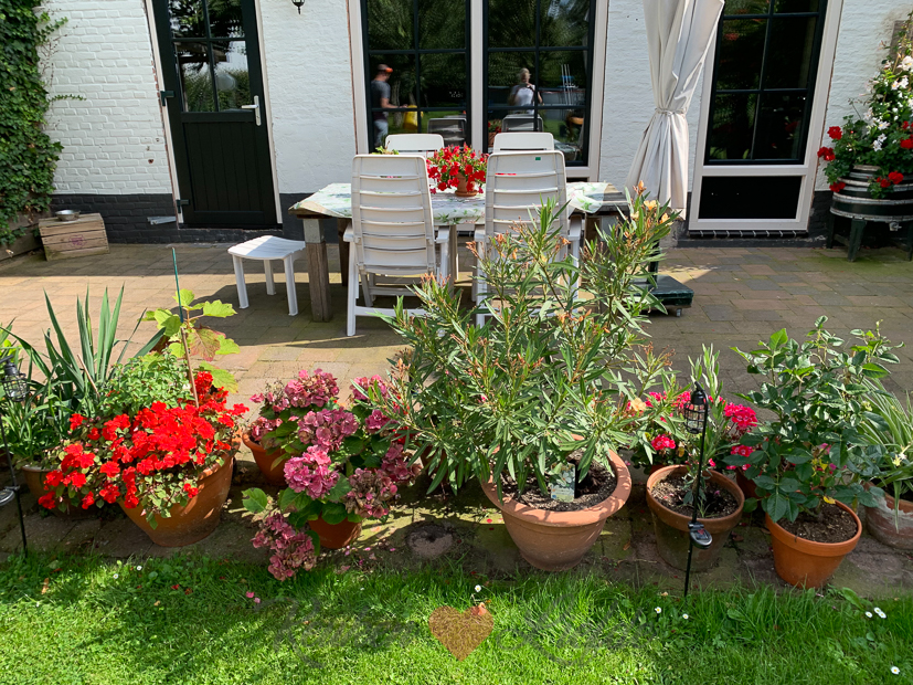 De wekker van Johan gaat heel vroeg want na drie weken vakantie moet hij weer werken. Ella en ik kunnen uitslapen. Na het ontbijt kruip ik een paar uurtjes achter de computer en daarna rommel ik wat in huis. Van de omgeknakte dahlia’s en gladiolen in de tuin maak ik wat boeketjes voor in huis. ’s Middags staan het vriendinnetje van Ella-Marie en haar moeder op de stoep met een bos bloemen en wat lekkers als bedankje voor het dagje Efteling gisteren. Helemaal niet nodig natuurlijk, maar wel superlief! Ze gaan direct in een mooie vaas. Een huis vol bloemen, ik hou ervan. Ik zet de Kenwood ook weer aan het werk want vanavond eten we zelfgemaakte pizza.