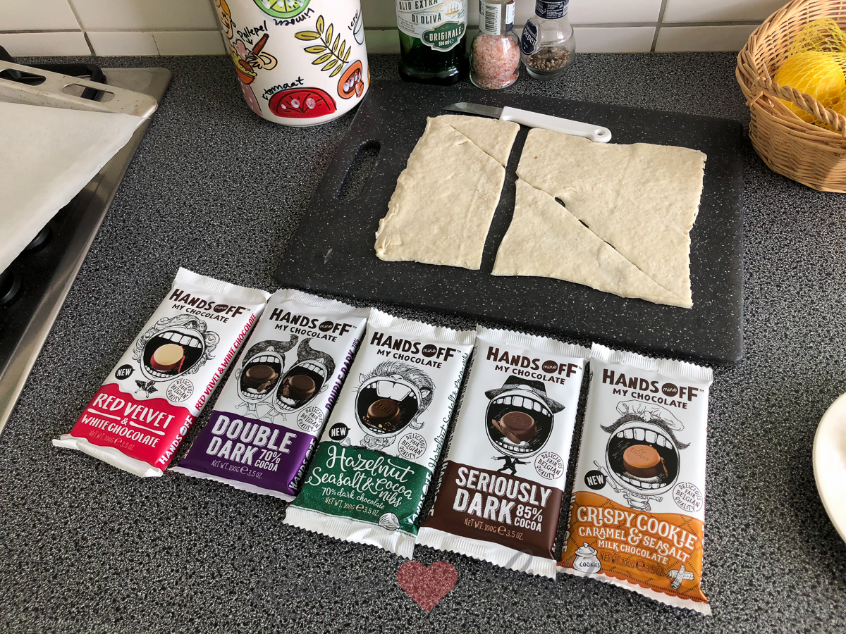 Ella-Marie heeft zin in een chocoladebroodje als ontbijt (dit recept). Ik gebruik de Hands off my chocolate die ik van de week kreeg thuisgestuurd. Mijn favorieten zijn de Crispy Cookie Caramel & Seasalt en de Red Velvet & Witte Chocolade. Wáánzinnig lekker!