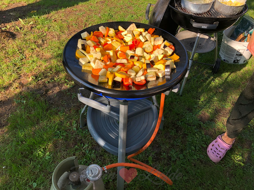 Na het ontbijt maakt Johan een huzarensalade en kookt alvast wat aardappels. Vanavond komen mijn ouders en broers eten en steken we de barbecue aan.