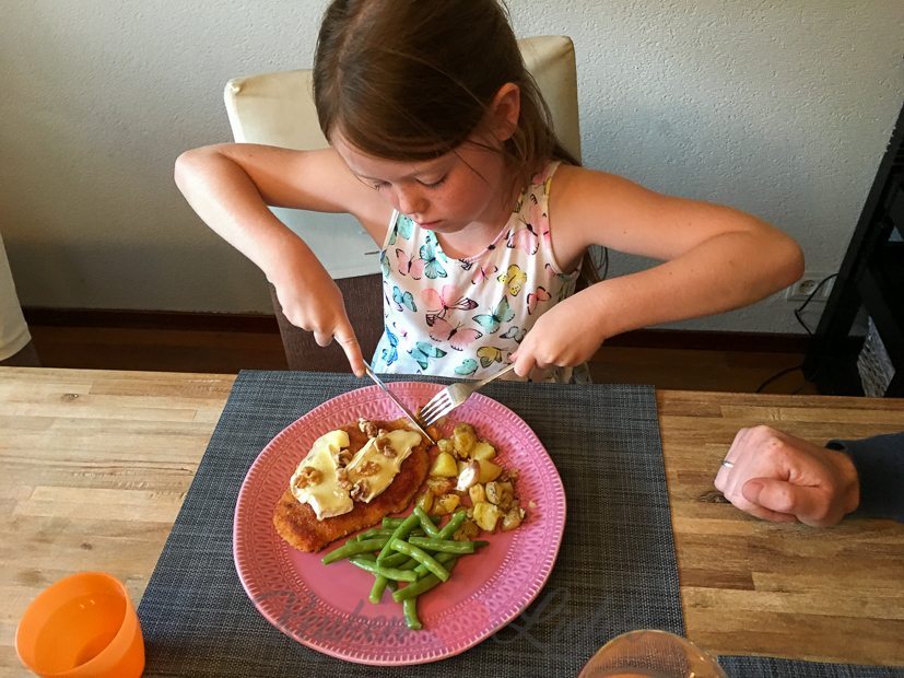 Er wordt weer lekker gekookt vandaag. Ik maak bananenbrood voor een nieuwe kookvideo (aanstaande zaterdag online!), hamburgersaus, druiven op siroop en voor het avondeten bak ik kipschnitzels (van de poelier, die zijn het allerlekkerst!) en serveer die met sperziebonen (ook uit de kas van Johan zijn oma) en aardappels uit de oven.