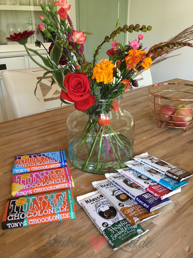 Een foto waar ik blij van word! De prachtige bloemen en mooie vaas zijn van Bloomon en kregen we van ons mediabureau Semilo omdat we verhuisd zijn. Superlief! De repen Tony’s Chocolonely en Hands off my Chocolate kreeg ik opgestuurd omdat ze nieuwe smaken hebben gelanceerd. Ik heb ze nog niet allemaal geproefd natuurlijk dus ik kan nog geen favorieten noemen. Heb jij ze al geproefd?