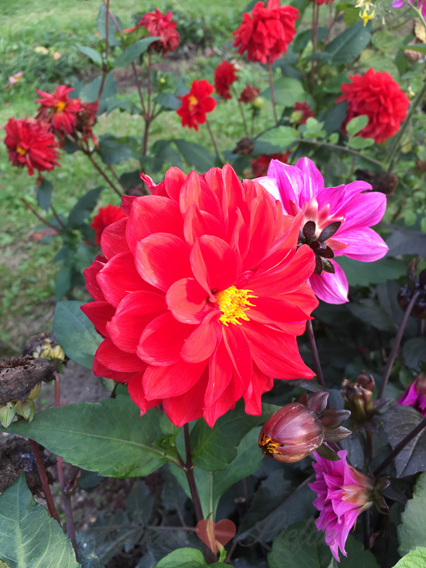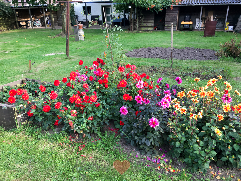 Na de F-1 race halen Johan en ik Ella-Marie weer op bij de ouders van Johan. Eenmaal weer thuis genieten we nog even van het mooie weer in onze tuin. Johan heeft een begin gemaakt met het omspitten van de moestuinbedden en de Dahlia’s staan er prachtig bij. Ik zie trouwens wel dat er nog wat onkruid getrokken moet worden… Klusje voor morgen!