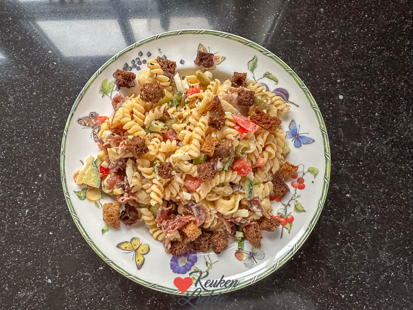 Het was weer een gewone werk- en schooldag voor iedereen. Aan het eind van de middag moest ik in het ziekenhuis zijn om een verdacht moedervlekje weg te laten halen. Over twee weken moet ik weer terug om de hechtingen eruit te halen en krijg ik de uitslag te horen. Best een beetje spannend. Johan maakte een lekkere pastasalade toen we weer thuis waren. Op KeukenLiefde vind je veel recepten voor pasta- en macaronisalade. Kijk hier maar eens tussen.