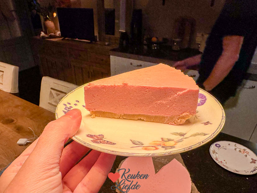 Ik maak ook nog een aardbeien kwarktaart en ’s avonds eten we een loempia met frietjes en salade. De kwarktaart is rond acht uur ’s avonds genoeg opgesteven om aan te snijden. Jottem!