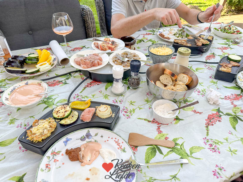 Ella heeft ’s middags een voetbalwedstrijd in Beuningen (gewonnen!) en ’s avonds gaan we buiten gourmetten. Zo lekker en gezellig.