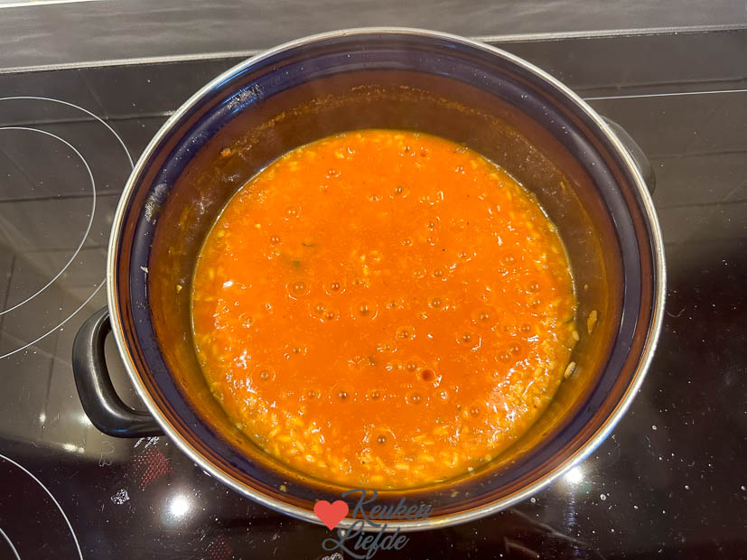 ’s Avonds maak ik tomatenrisotto voor het avondeten.