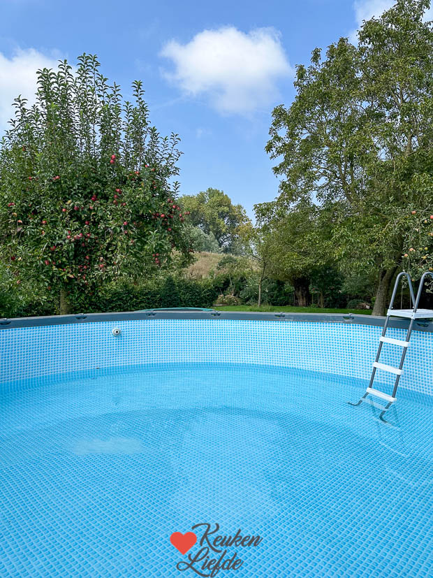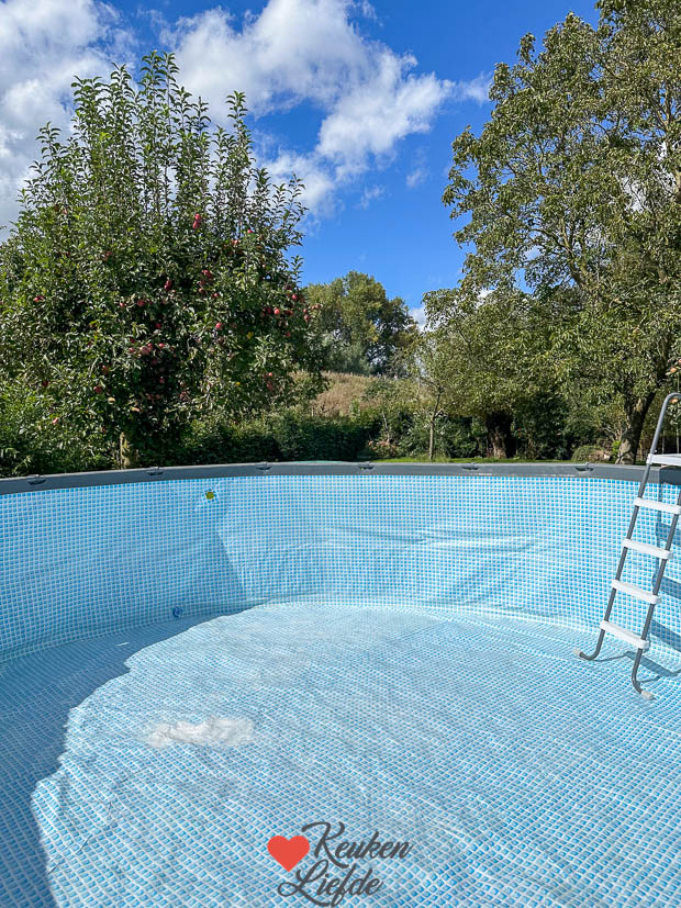 De stop werd ook weer uit het zwembad getrokken. Het duurt ongeveer twee dagen voordat het zwembad leeg is en daarna moet het zeil nog drogen voordat hij weer naar binnen kan. Dat is het nadeel van een opzetzwembad. Het liefst zou ik een ingegraven zwembad willen maar dat is duur en er zijn nog genoeg dingen in ons huis die eerst opgeknapt moeten worden. Ach, dromen is ook leuk… 😉