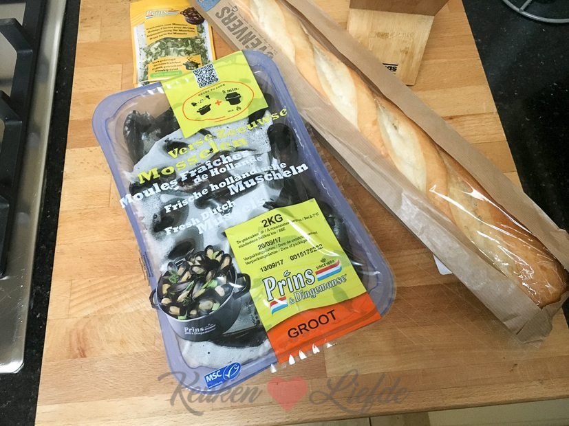 Ik heb nog geen flauw idee wat ik vanavond wil eten en ga maar gewoon naar de supermarkt om daar inspiratie op te doen. Bij de visafdeling zie ik mosselen liggen en weet meteen, dat gaat het worden!
