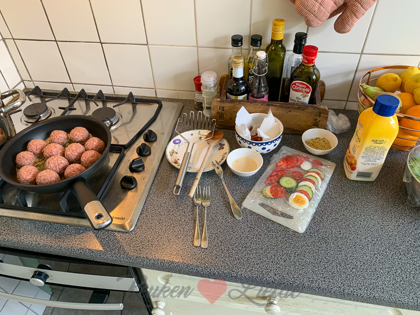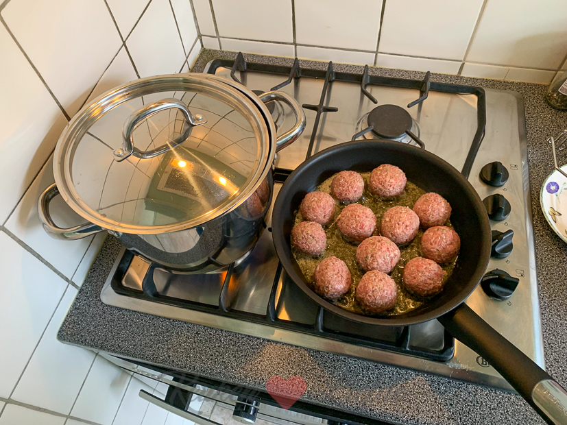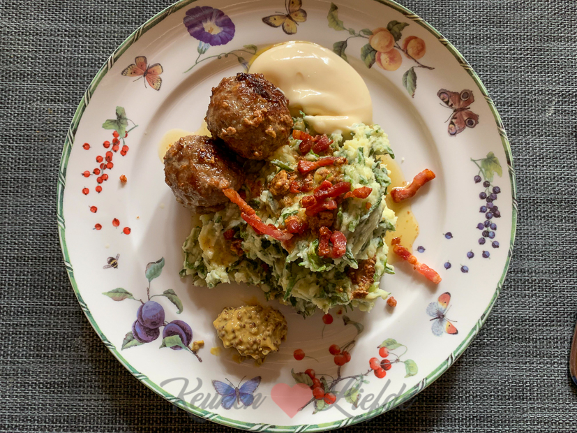 Vandaag kook ik wel. Ik maak sla-stamppot met gehaktballetjes en uitgebakken spekjes. Erbij serveer ik de Hollandse caprese waarvan ik het recept gisteren al met je deelde. Ook het recept voor de sla-stamppot met gehaktballetjes komt eraan!