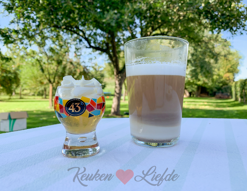 ’s Ochtends belt mijn moeder of het goed is dat zij en mijn vader begin van de middag langskomen op de fiets om koffie te drinken. Ja hoor, gezellig! Toevallig sta ik net op het punt om een stoofperencake te bakken dus ze hebben geluk. 🙂 Helaas haalde ik de cake te vroeg uit de oven waardoor hij inzakte. Jakkes, daar kan ik zo van balen! Gelukkig kon ik wat van de buitenkant snijden en die alsnog serveren. Ik was zo nijdig dat ik er geen foto van maakte. Ik maakte wel een foto van het glaasje likeur met slagroom en de cappuccino die ik ze voorschotelde. Ze hadden er tenslotte een fietstocht van 1,5 uur op zitten en moesten ook weer 1,5 uur terug fietsen. Een borrel hadden ze dus wel verdiend. De mislukte perencake was zo’n succes dat ze voor een tweede punt gingen, wederom begeleid door cappuccino en nog een borrel.