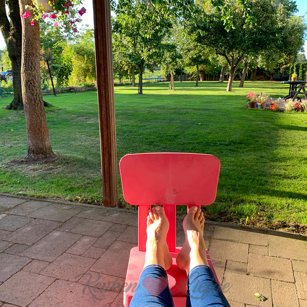 Johan en ik zitten ’s avonds nog lang buiten te genieten van een heerlijke avond.